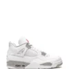 Bright and bold. These Air Jordan 4 Retro sneakers from Jordan are the perfect amount of flash for everyday wear. Crafted from white leather, the high-top pair of Michael Jordan’s signature sneakers are finished with eye-catching team orange and metallic trims for added detail.