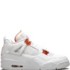 Combining the silhouette’s “Oreo” and “White/Cement” colourways, the Air Jordan 4 Retro “White Oreo” sneakers boast a monochrome design. Speckled grey detailing appears alongside the pair’s white “wings” whilst the Jumpman motif stands out in a bold Fire Red.