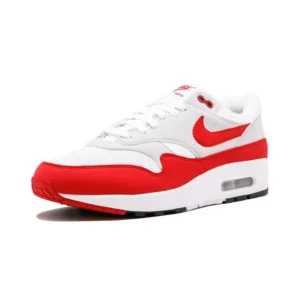 The 30th anniversary celebration for the Air Max 1 continues with another momentous re-release of the iconic Air Max 1 “Anniversary” in the OG Sport Red-accented colorway. Nike designer Tinker Hatfield introduced the Air Max, featuring the first-ever visible air unit, to the world in 1987. The aforementioned colorway and its Sport Royal counterpart returned early 2017 in a limited release to celebrate Air Max Day. The Swoosh brand brings the Sport Red pair back, this time as a much more widely available release. This iteration of the Air Max 1 maintains its OG shape and details. The Sport Red hue covers the suede mudguard and Swoosh, along with the Nike branding on the heel and tongue. Grey suede and white mesh paneling balances the rest of the shoe.