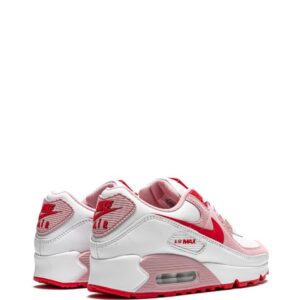 Feeling bored? Give your days a kick with these white, university red and tulip pink leather Air Max 90 sneakers from Nike. And bounce onto any adventure life throws at you.